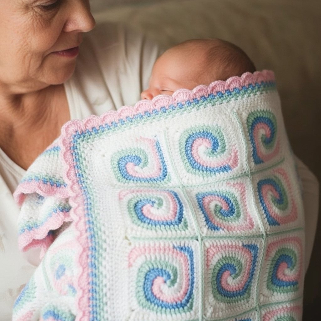 Order now and give your newborn the gift of comfort and style with our Spiral Granny Square Baby Blanket. It’s not just a blanket, it’s a timeless piece of nursery decor that will create lasting memories.